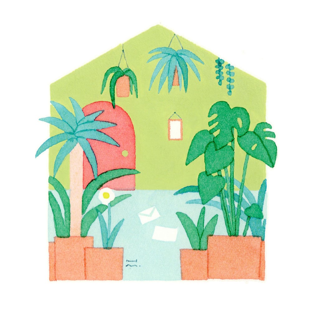 使用画材:アクリル絵の具、色鉛筆、水彩紙
